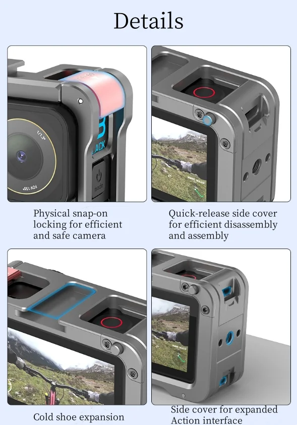 Hongdak Suitable for DJI ACTION3/4/5Pro Quick Release Metal Cage Sports Camera Cage Expansion Accessories